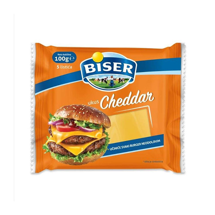 Biser topljeni sir Cheddar 100g KOM 24